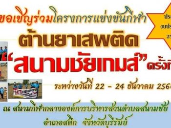 ขอเชิญร่วมโครงการแข่งขันกีฬาต้านยาเสพติด ประจำปีงบประมาณ 2567